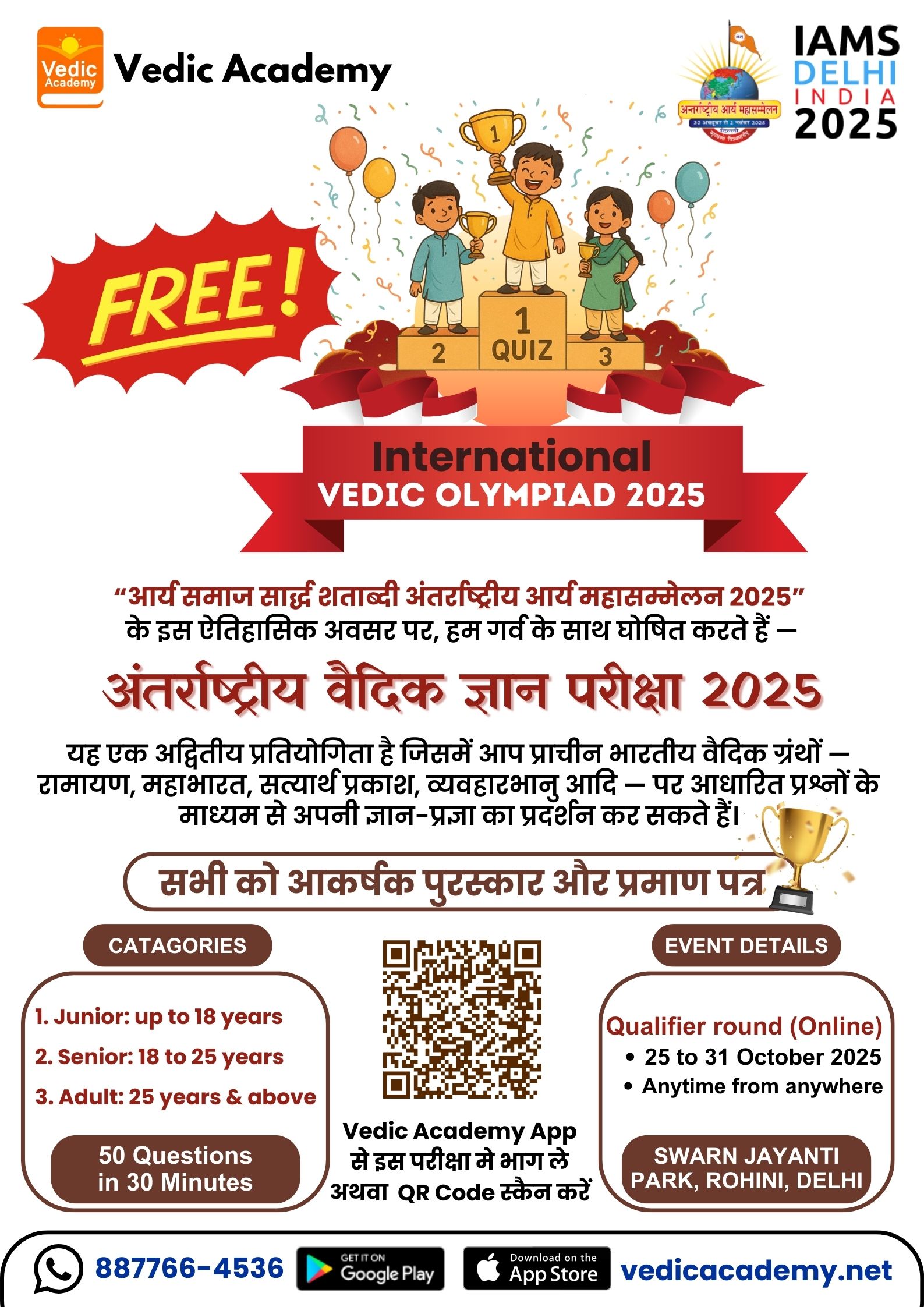 The Vedic Olympiad 2025 was a multi-stage event designed to test students and adults on their problem-solving skills under strict time constraints. The journey began with a Qualifier Round (Online) held between October 25 and 31, allowing participants to compete from anywhere in the world. The top qualifiers then advanced to the Final Round (Offline), which took place on November 1, 2025, at Swarn Jayanti Park, Rohini, Delhi.